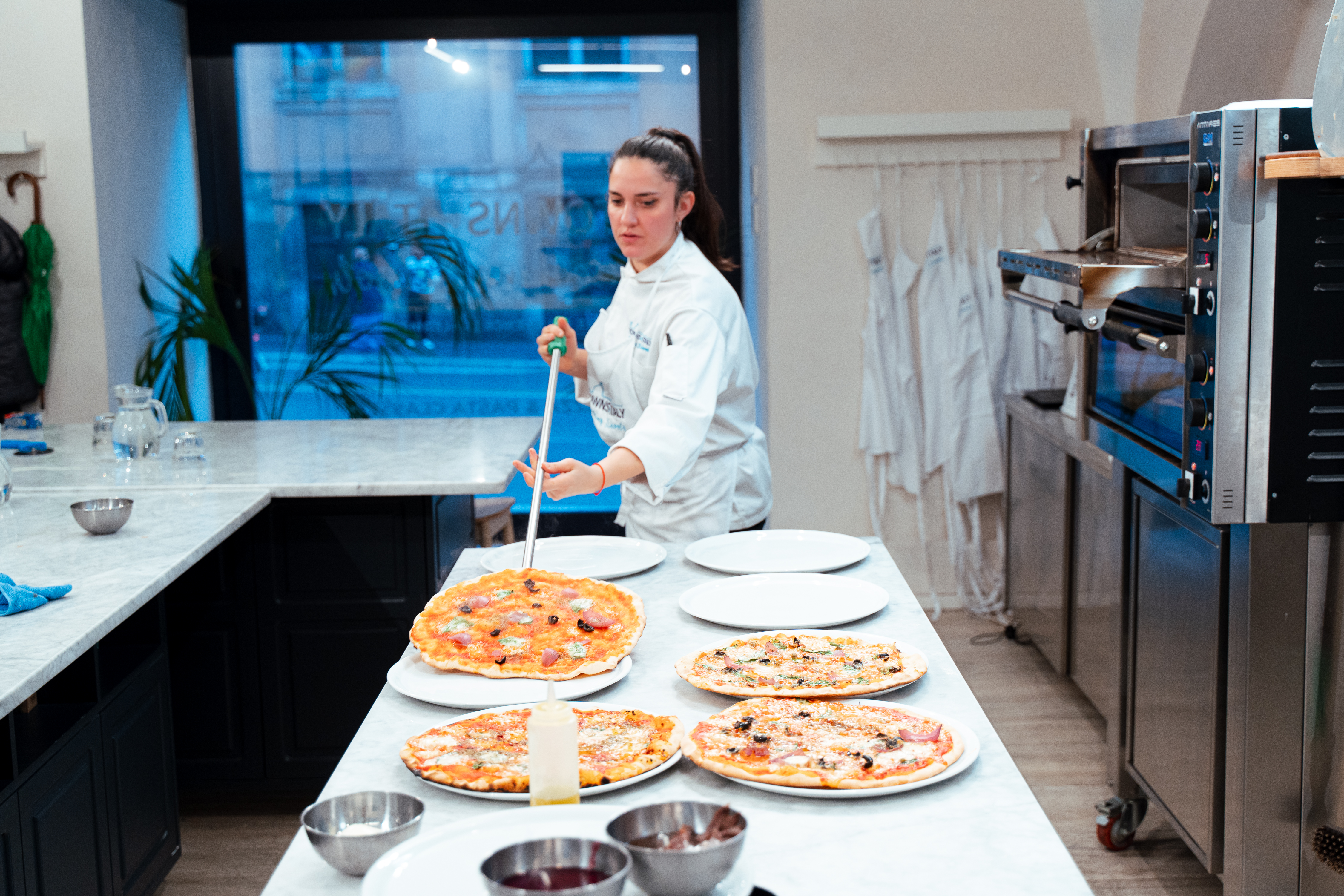 As you step into our cooking school, you're greeted by the warm and inviting atmosphere that sets the stage for your culinary adventure. With apron donned and utensils in hand, you'll be guided by our seasoned professional pizzaiolo chef who will lead you through the intricate art of crafting the perfect dough, selecting the freshest toppings, mastering the assembly and baking techniques that characterize the beloved Roman-style pizza. You will learn not only how to mix flour, water and yeast to make a chef-proof dough, how to combine ingredients to recreate the typical toppings of Roman pizza tradition, and how to bake your creation using a professional pizza shovel. But what you'll learn transcends geographical boundaries - the techniques you'll acquire are applicable whether you're baking in a professional-grade oven or your very own, ensuring that the flavors of Italy can be savored no matter where you are in the world. After this cooking class in the heart of Rome you will be able to share the delectable taste of Rome with your family and friends once back home!